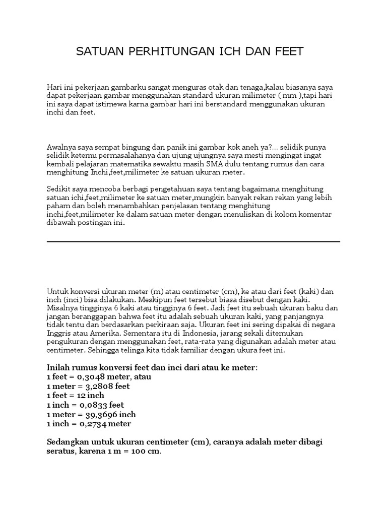 1 Kaki Bersamaan Berapa Inci : 1 kaki = 12 inci 1 inci = 2,54 cm.